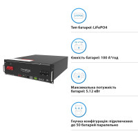 Акумулятор використовує перевірену літій-залізо-фосфатну (LiFePO) технологію, яка гарантує високу безпеку, довговічність (понад 6000 циклів) і стабільну роботу в широкому температурному діапазоні. Інтегрована система управління батареєю (BMS) контролює основні параметри — заряд, розряд, температуру, захищаючи пристрій від перевантажень і коротких замикань.