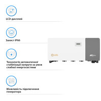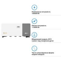 Solis-100K 5G-PRO — це трифазний інвертор потужністю 100 кВт, розроблений для великих комерційних та промислових сонячних електростанцій. Завдяки наявності 10 MPPT (точок максимальної потужності), інвертор ефективно компенсує вплив затінення і забезпечує стабільну роботу за різних умов освітлення. Підтримка перевантаження до 150% та високий коефіцієнт корисної дії до 98,7% роблять його надійним і продуктивним рішенням для великих сонячних систем.